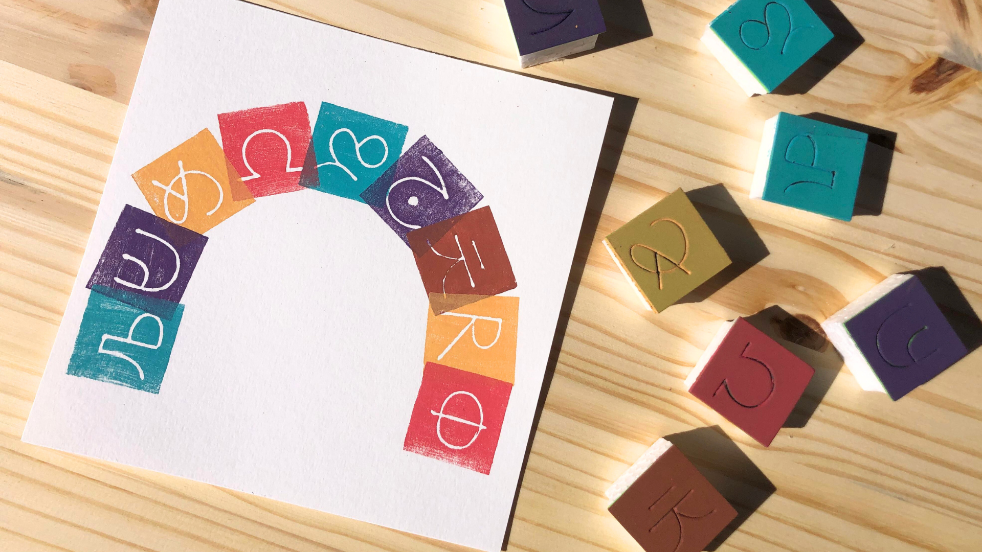 La prima parte del laboratorio prevede una panoramica di spunti visivi per entrare nel tema, con una selezione di libri di ispirazione, sia per grafica che per contenuto. Da qui, attraverso una semplice tecnica di stampa artigianale, ci si addentrerà tra segni e simboli di altri alfabeti, prima di tutto per scoprirli e poi per sperimentare con loro.