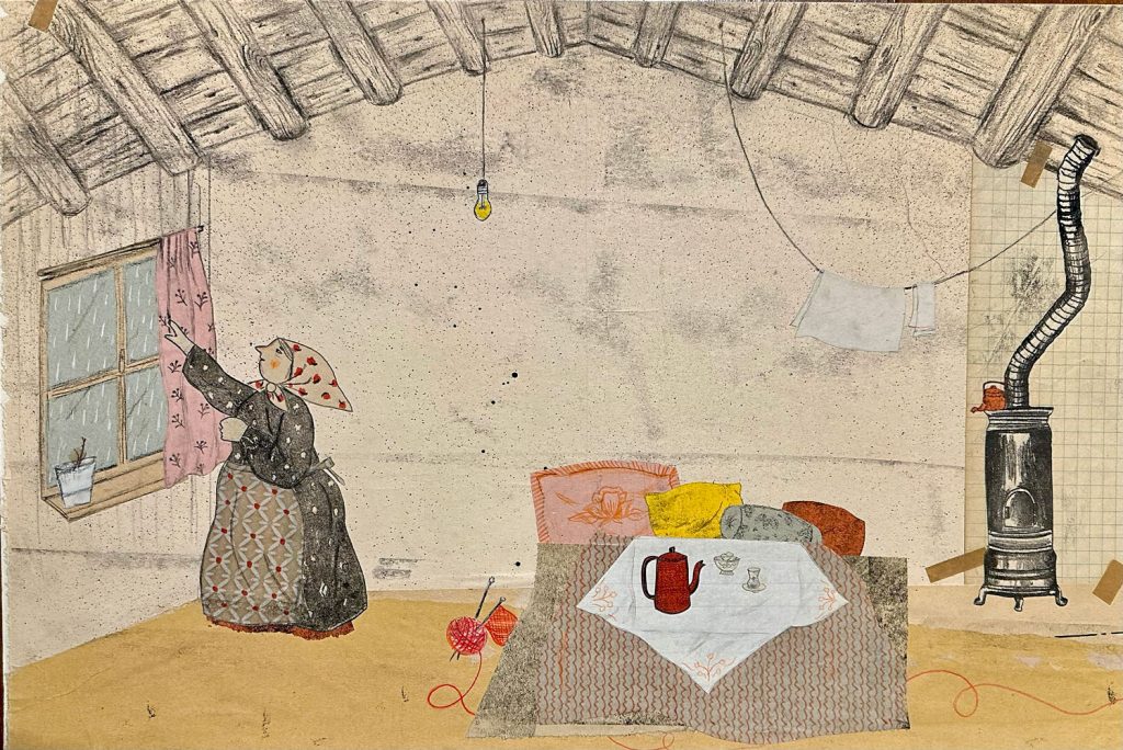 Anche il collage abbraccia la spontaneità, riflettendo un mondo che può sembrare leggero. La struttura di queste due impronte risuona profondamente nella natura umana. Ciò che rende interessante lo stile naïf e il collage è la capacità di stupire e di trasportare verso la semplicità”.