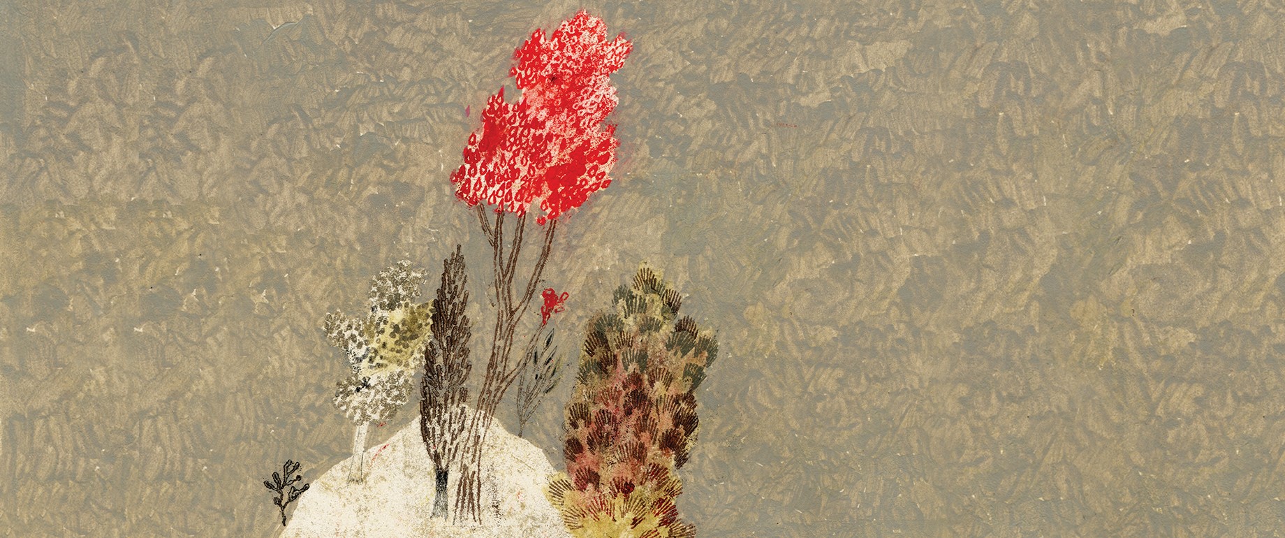 Una piccola anticipazione delle opere esposte, a partire dal libro “Llama de amor viva”, un’antologia di poesia sacra, in cui la Natura ha il ruolo da protagonista e di volta in volta si manifesta nel seme, nel fiore, nell’albero, nella foresta. “Paesaggio con albero rosso”, immagine della mostra, proviene proprio da questo libro pubblicato nel 2013.